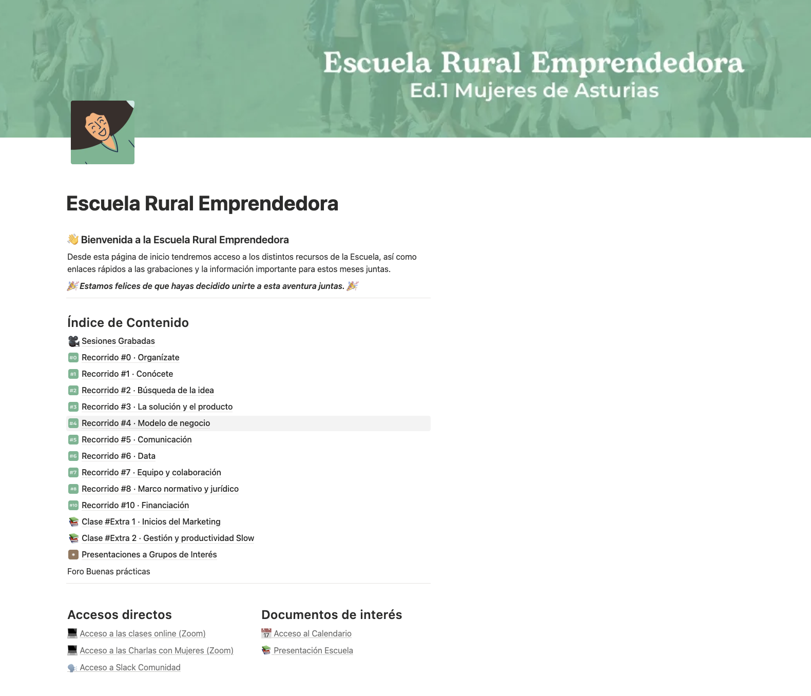La Escuela Rural Emprendedora es una iniciativa creada para fomentar el emprendimiento y el autoempleo en mujeres jóvenes en riesgo de exclusión de Camín Real de la Mesa, Asturias facilitando el retorno y arraigo del talento femenino.