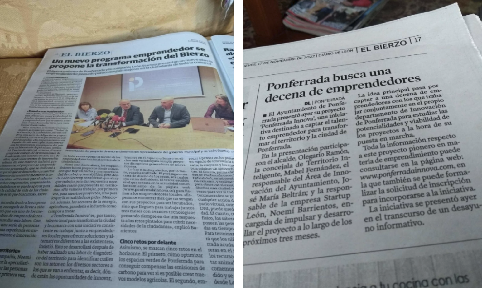 El proceso comenzó con un trabajo de diagnóstico del territorio desarrollado junto a León Startup, liderado por Noemí Barrientos, a partir de un mapeo y análisis de las necesidades reales de transformación de Ponferrada.